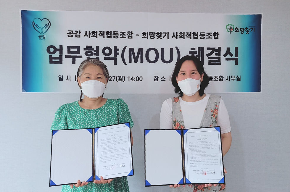 2022년 6월 27일(월) 공감 사회적협동조합(이사장: 장은종)과 희망찾기 사회적협동조합(이사장: 하미숙)은 건강취약계층을 위한 힐링 프로그램 협력을 위해 업무협약식을 진행했습니다. 두 기관의 협력사업이 기대됩니다. 감사합니다.희망찾기 사회적협동조합https://m.blog.naver.com/hopebook4589#공감 #희망찾기 #힐링 #업무협력 #대전시서구 #사회적협동조합